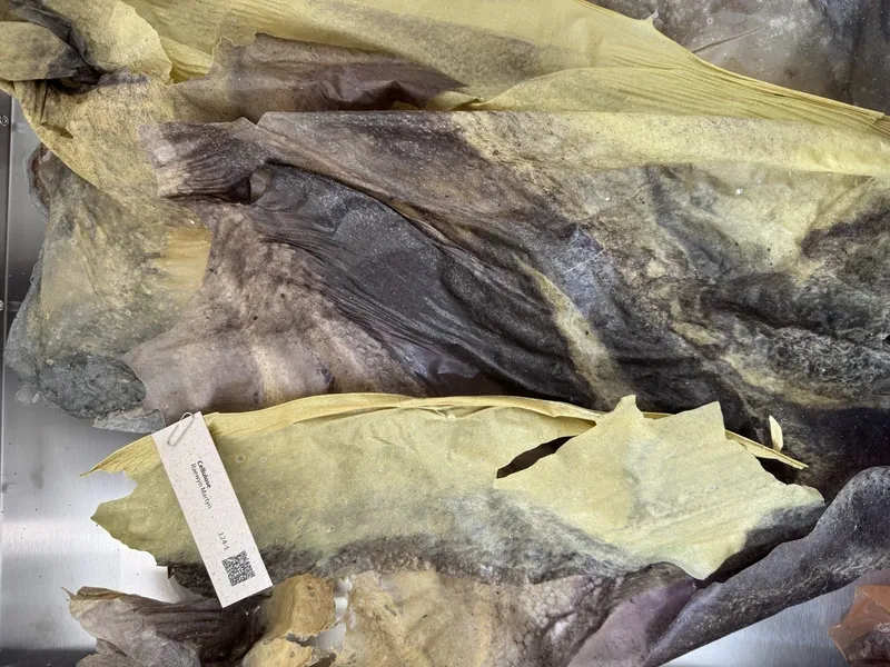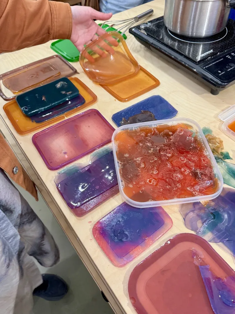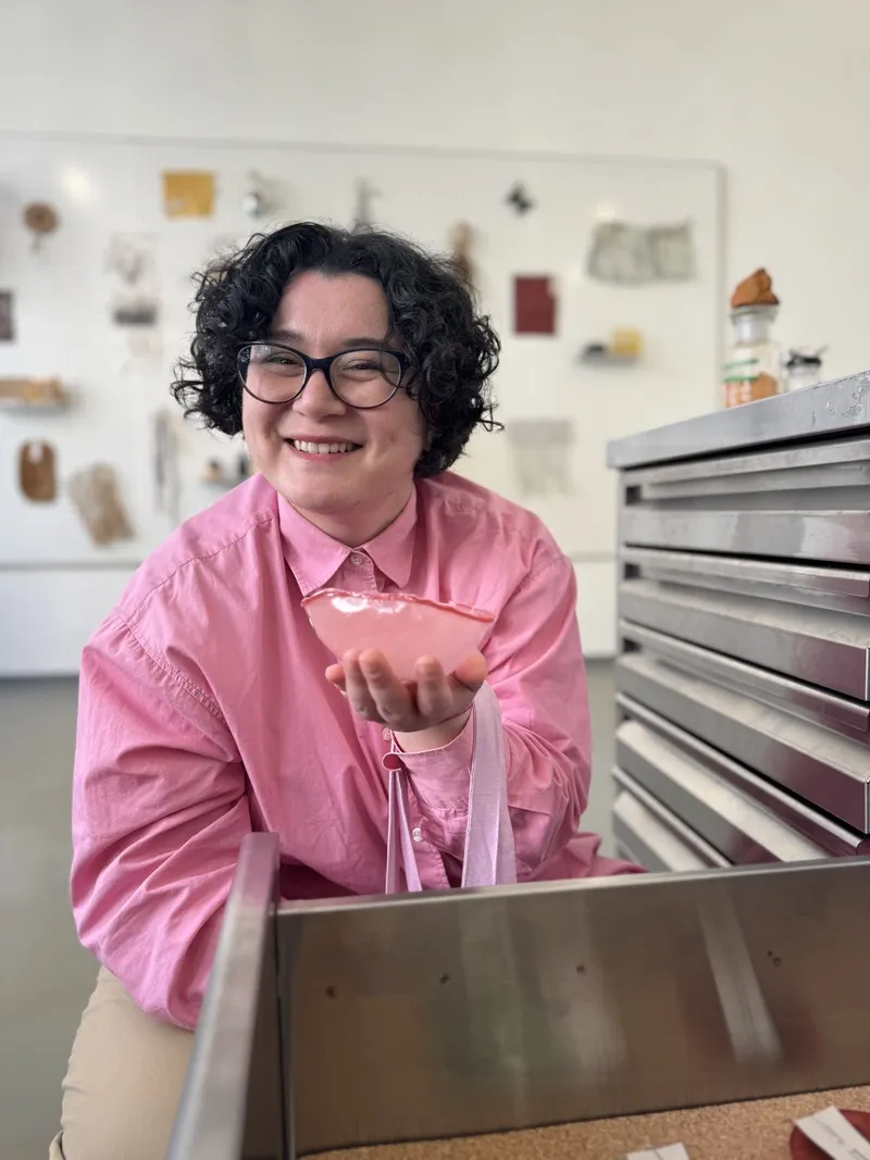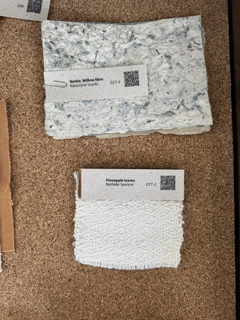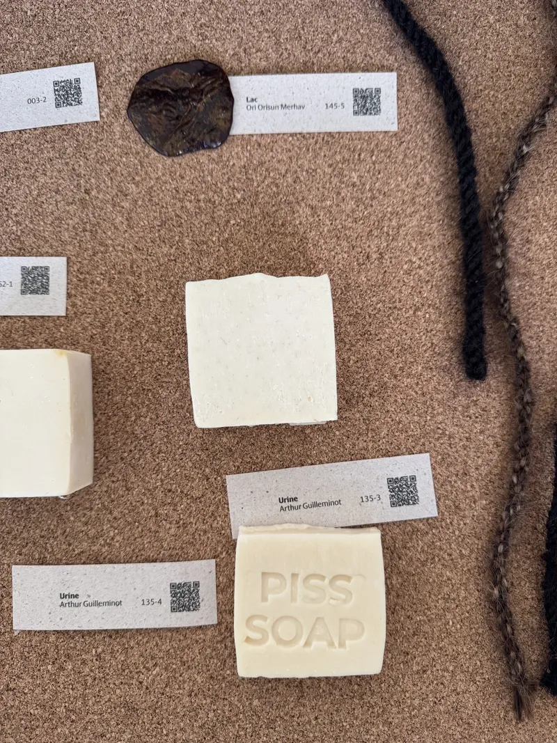 This April, together with HIAP and Bioart Society, we went on a field trip to the Jan Van Eyck Academie to explore the renowned Future Materials Lab. This project, dedicated to sustainable materials and material knowledge, features both an online database and a physical archive of material samples at the Academie’s premises, which reopened earlier this year. Food waste, fungi, human hair, potato starch, algae, gelatine—these are just a few of the raw materials that might serve in the future as sustainable alternatives to mass-produced materials like silicone, glass, or leather.